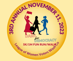 This is the third annual League of Women Voters of Washington County Dash for Democracy 5K and 1 mile Fun Run/Walk. It will take place at Veteran's Park at Lake Fayetteville in Fayetteville, AR. Come join the fun and help us raise money to advance our causes. If you can't attend, you can still donate to the cause.