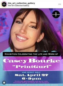 Family and friends of Casey Bourke and the art community of NWA come together for a celebration of the life and unique art of the late artist known as PrintGurl.