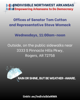 This peaceful and nonviolent action is hosted by Indivisible NWA.