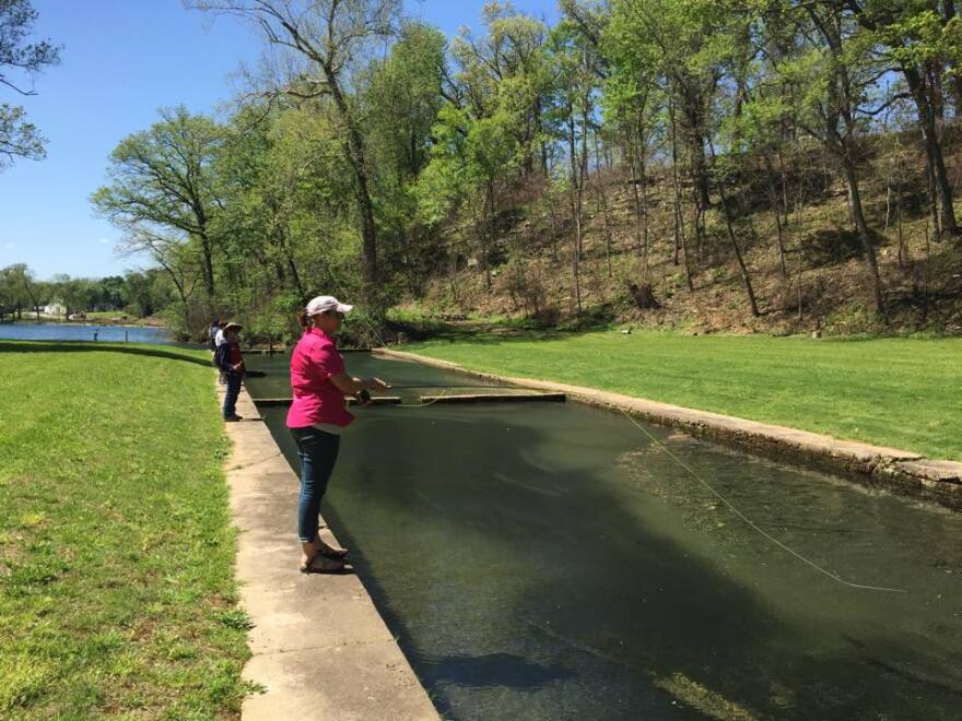 Kerri Russell says spending time on the river helped her through her recovery from breast cancer. She got her line in the water for the first time over 15 years ago, and her hobby has blossomed into a passion that takes her all over the country teaching other women the techniques of fly fishing. Russell is the National Chair of the Women’s Initiative at cold water conservation organization Trout Unlimited. She works to increase awareness of fly fishing and Trout Unlimited among women. She says more than 10 thousand women have joined the organization in the past 18 months. We spent time at a women’s fly fishing clinic run by Trout Unlimited at Cave Springs. Hear how women joining the sport are using fly fishing for recreation, therapy, and sisterhood.