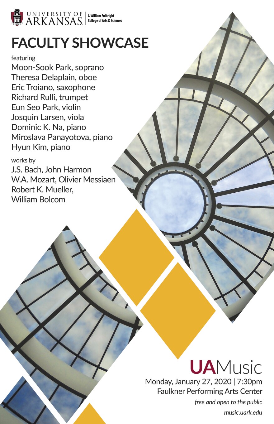 Lia Uribe, associate professor of music at the University of Arkansas, says this week the University of Arkansas Department of Music is hosting a Faculty Showcase concert and a Brass and Ivory Trio concert.
