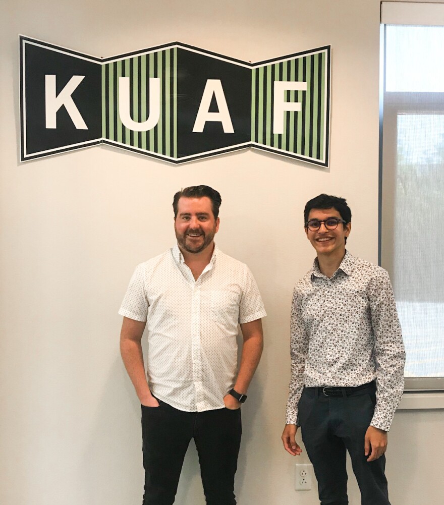 Matthew Moore (left) with Ashwin Marathe (right) at KUAF