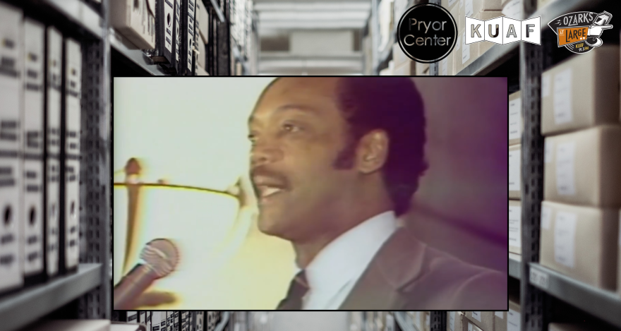 Kellams: That's right. So Jackson did address the convention — the Democratic National Convention — and gave his famous Rainbow Coalition speech. It was also, notably, the first speech at a national convention to mention gays and lesbians. Jackson went on to endorse the party nominee and even stumped for his former opponent. Here is a 1984 report. He's back in Arkansas, this time in Pine Bluff.