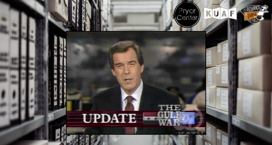 Dixon: That was about 24 hours after the war began. If you think about the technology — he's saying "first pictures" — it took that long because there was not a satellite uplink out of Iraq at the time. They had to get that video to a safe country where they could uplink it. Once the war began, ABC pretty much took over the airwaves. Peter Jennings went wall to wall, as we call it, with coverage. KATV didn't even get a local newscast until the second day, and they weren't really newscasts. We called it a Gulf War update. Here's one of them.